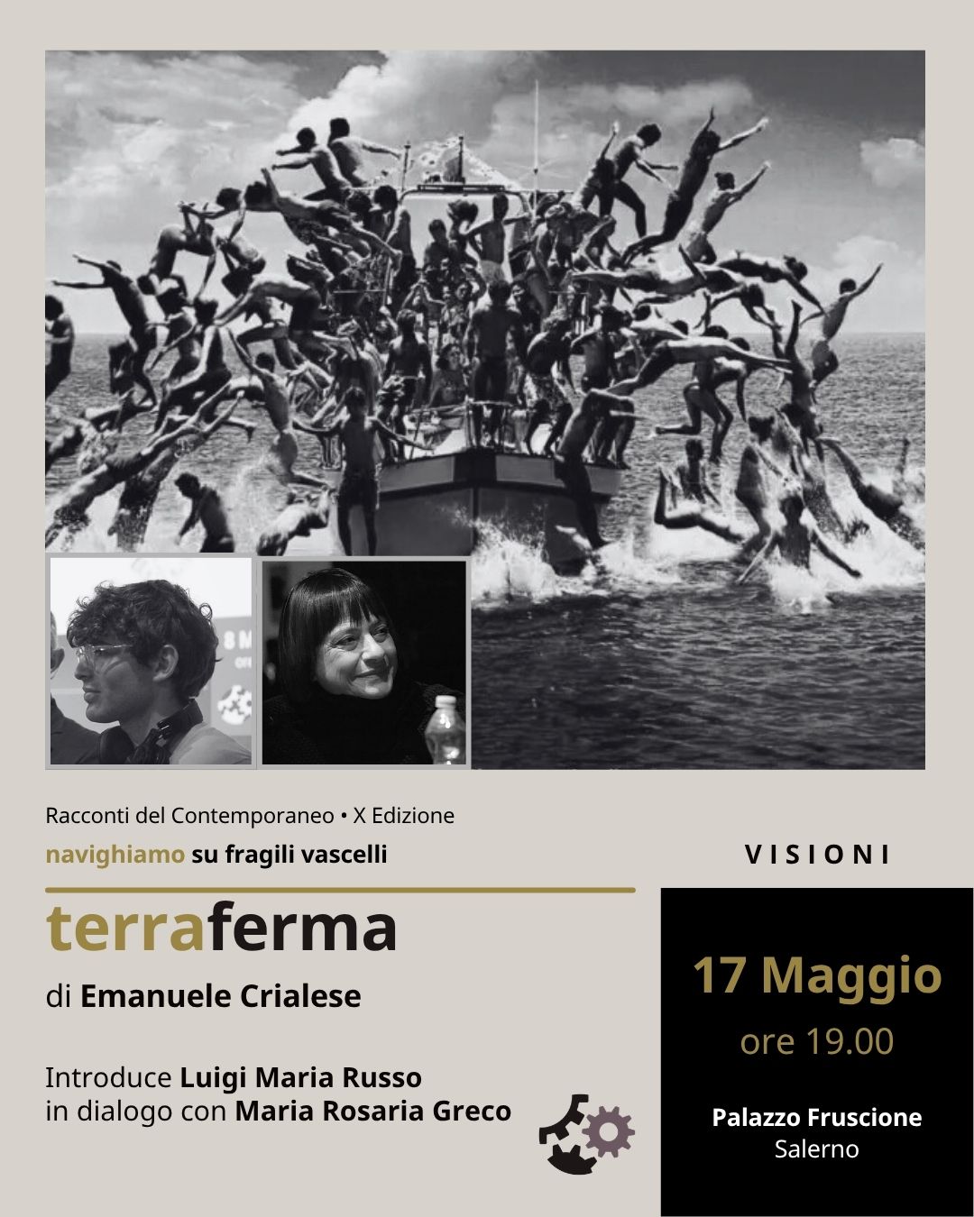 Visioni: domenica 17 maggio (ore 19.00) Terraferma Introduce Luigi Maria Russo (curatore schede cinema della rassegna Visioni) in dialogo con Maria Rosaria Greco (curatrice di Femminile Palestinese e Mediterraneo Contemporaneo) Anno 2011 - Durata: 88 minuti (1h38’) – Genere: Drammatico - Produzione: Italia - Regia: Emanuele Crialese – Interpreti: Filippo Pucillo, Donatella Finocchiaro, Mimmo Cuticchio, Beppe Fiorello, Timnit T., Martina Codecasa. Nove anni dopo “Respiro” Emanuele Crialese torna a Lampedusa, ma senza nominarla, per raccontare una nuova visione del mare di Sicilia, ancorata questa volta al paesaggio umano e disperato dei profughi. In un'isola del Mediterraneo, il ventenne Filippo, vive con sua madre...