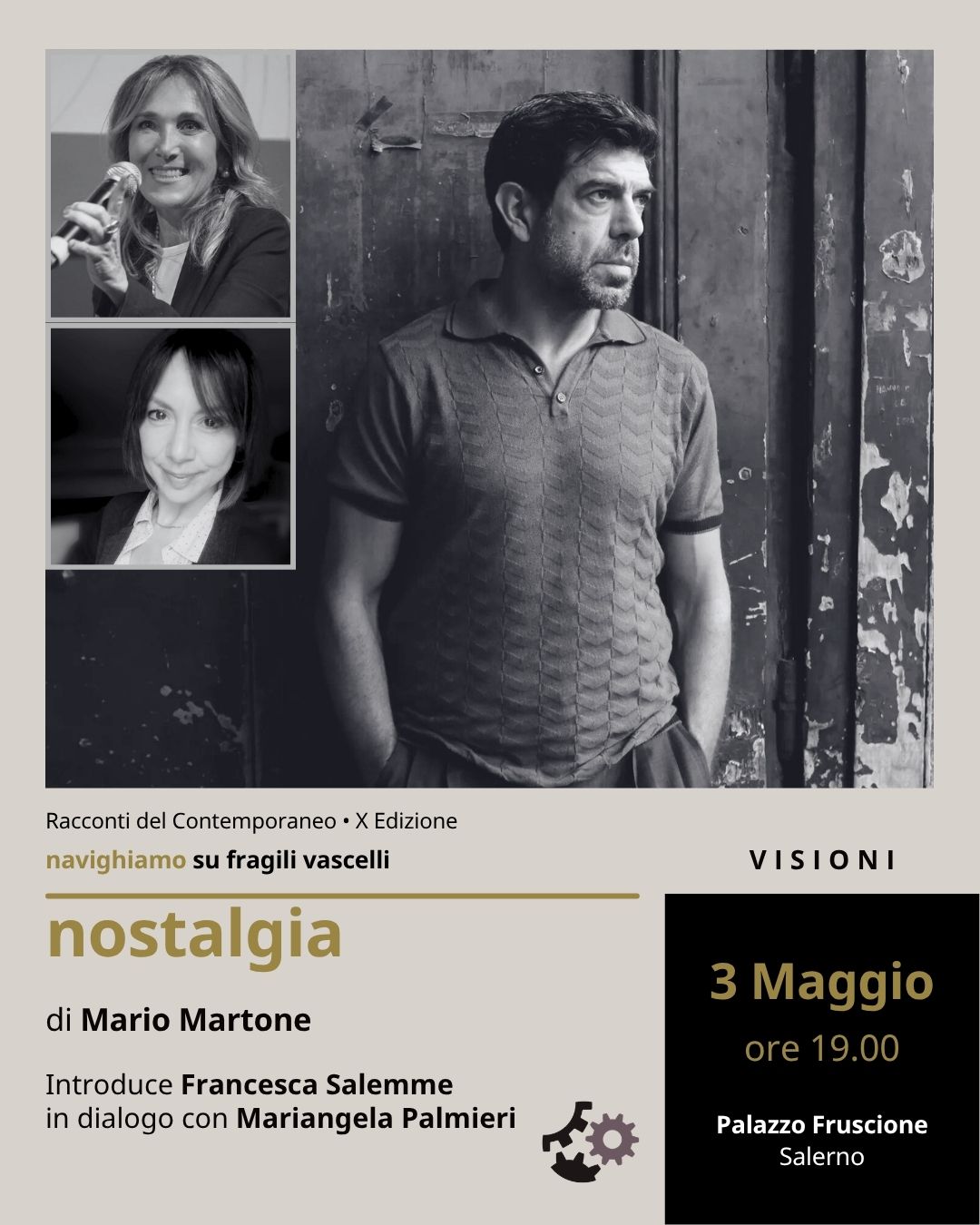 Visioni: domenica 3 maggio (ore 19.00) Nostalgia Introduce Francesca Salemme (giornalista) in dialogo con Mariangela Palmieri (docente di Storia del Cinema, Università degli Studi di Salerno) Anno 2022 - Durata: 117 minuti – Genere: Drammatico - Produzione: Italia - Regia: Mario Martone – Interpreti: Pierfrancesco Favino, Tommaso Ragno, Francesco di Leva, Anita Quattrocchi. «La conoscenza è nella nostalgia. Chi non si è perso non possiede» con questo verso tratto da "Poesie in forma di rosa" di Pasolini si apre il film di Mario Martone, basato sul romanzo di Ermanno Rea, che racconta la vicenda di Felice Lasco, che torna a casa...