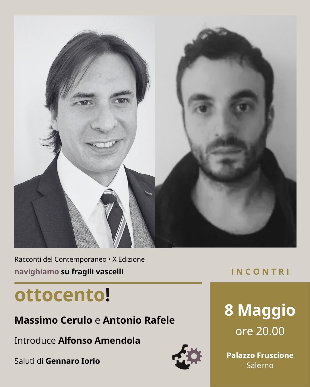 Incontri: venerdì 8 maggio (ore 20.00) Ottocento! Con Massimo Cerulo (docente di Sociologia Università di Napoli “Federico II”-CERLIS CNRS, Sorbonne Paris Cité) e Antonio Rafele (docente di Sociologia dei processi culturali e comunicativi, Università di Roma La Sapienza). Introduce Alfonso Amendola (direttore scientifico Tempi Moderni). Saluti di apertura: Gennaro Iorio (docente di Sociologia generale, Università degli Studi di Salerno) L’incontro muove dal brano scritto da Fabrizio De André nel 1990, pagina singolare e visionaria in cui il melodramma si intreccia allo yodel, generando un effetto di sottile straniamento. Ne nasce un’atmosfera sospesa, quasi crepuscolare, che sembra anticipare, come in...